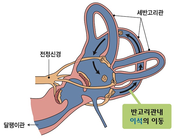 그런데 본래에 있던 자리를 이탈하여 회전, 가속을 감지해 주는 곳인 세반고리관으로 잘못 들어가게 되면 이곳을 자극하여 움직이려고 할 때마다 회전성 어지러움을 느끼게 됩니다. 이것을 이석증이라고 부르는 것입니다.