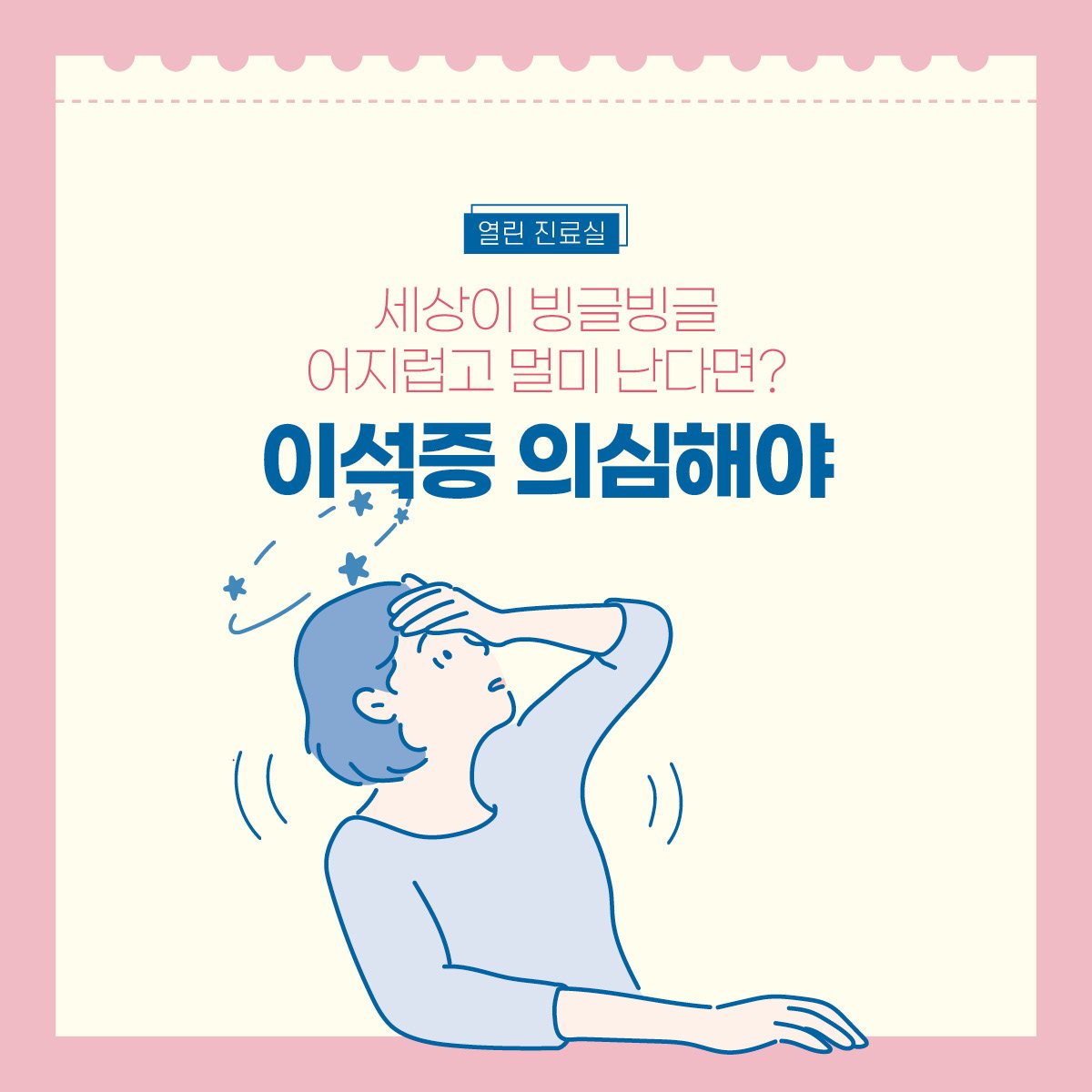 그래도 그나마 이석증 치료법이 있기에 이석증 치료를 받으면 쉽게 호전된다고 하니 다행입니다.